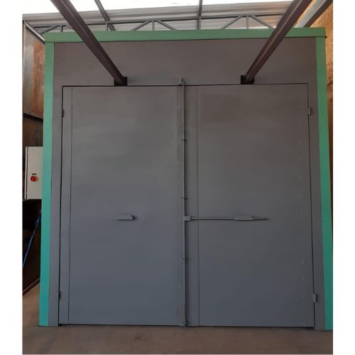 Fabricadas com aço galvanizado na parte interna e aço carbono na parte externa, com tratamento especial e pintura. Fechos tipo “baú” com perfil de silicone de alta temperatura garantem vedação eficiente, além de puxadores e dobradiças reforçadas. Essa construção assegura o melhor desempenho das Estufas de Pintura para Cura com Aquecimento a Gás.